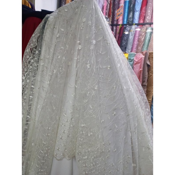 Kain kebaya semi prancis terbaru warna cream kebaya prancis lace katun gucci premium, bahan brokat lace mewah, pastel edition, bisa.